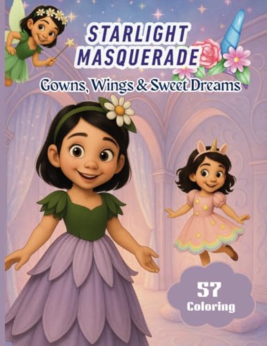 Starlight Masquerade: Gowns, Wings & Sweet Dreams: 57 Coloring Pages for kids | 8.5" x 11" in - enchanted costume art, princess & fairy doodles, ... cozy swirl backgrounds, petal-dress sketches