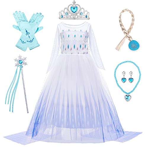 LOBTY Flicka Elsa Princess Klänning, Snö drottning Kostym, Prinsessklänning, Princess Accessory, Födelsedag, Fest, Jul, Halloween, Karneval, Cosplay, Barn, Vit