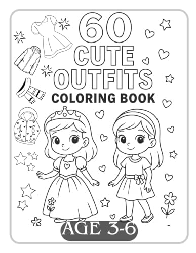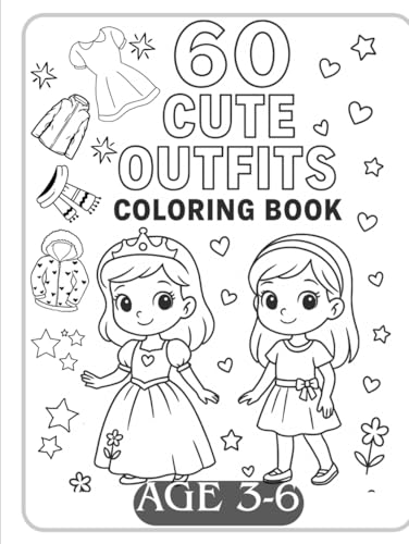 60 Cute Outfits Coloring Book: Fun Dress & Fashion Coloring Pages for Kids Ages 3 to 6 | Princess Gowns, Modern Styles, Cultural Outfits & More!