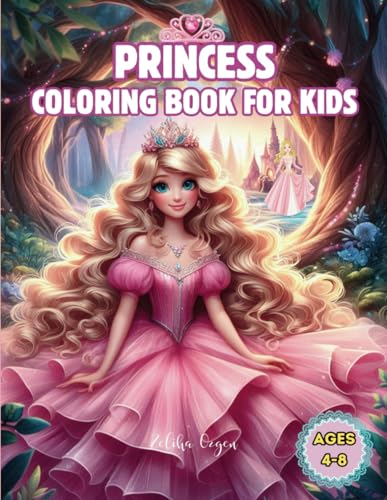 Princess Coloring Book For Kids Ages 4-8: Cute, Fun and Magical Activity Book for 4-5, 5-6, 6-7, 7-8 | Pretty and Easy to Color Beautiful Images of Princesses in Dress | Perfect Gift for Children