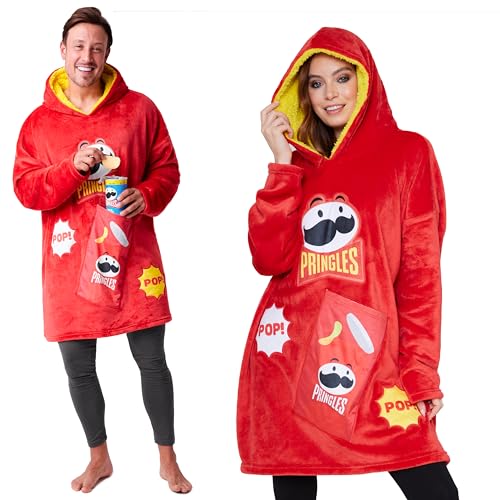 Pringles Huvtröja filt för vuxna tonåringar mysig överdimensionerad fleece huvtröja en storlek sherpa huva ficka gåvor för män, Röd, en storlek