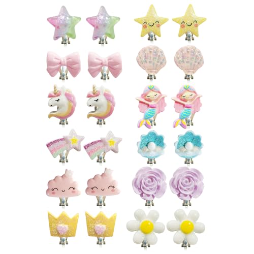 12 par stiftörhängen för barn, tecknad design, blommor och prinsessa - perfekt för födelsedags- och dagspresenter
