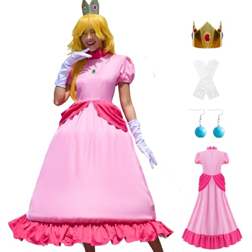 PAINEOMN prinsessklänning för kvinnor halloween prinsessa cosplay kostym krona örhängen handskar set vuxen maskeraddräkt, persika 2, stor