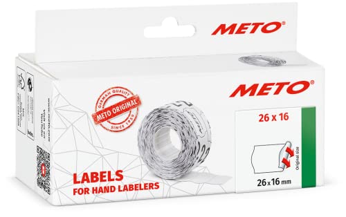 Original Meto prislappsetiketter (26 x 16 mm, 2 rader, 6 000 stycken, vita, avtagbara, prislappar för Meto, Contact, Sato, Avery, Tovel, Samark etc.)