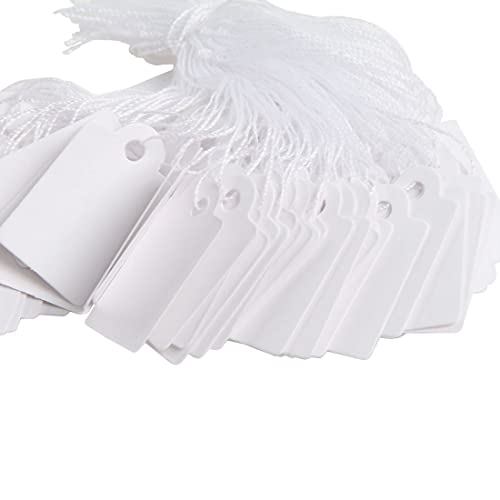 Perlin 300 st etiketter med tråd prisetiketter, prislappar, trådetiketter, smyckesetiketter, trådetiketter, hängetiketter, kartongetiketter, prismärkning (23 x 13 mm vit)