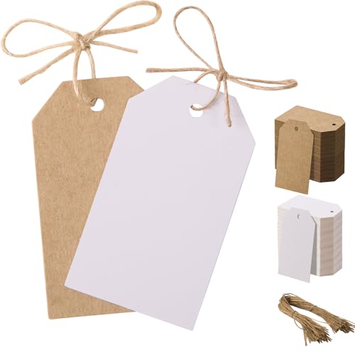 Strung Tags brun vit förstärkt kort kläder paket etikett snöre hängande gåva gungbiljetter kraft hängande prismärkning 100 st