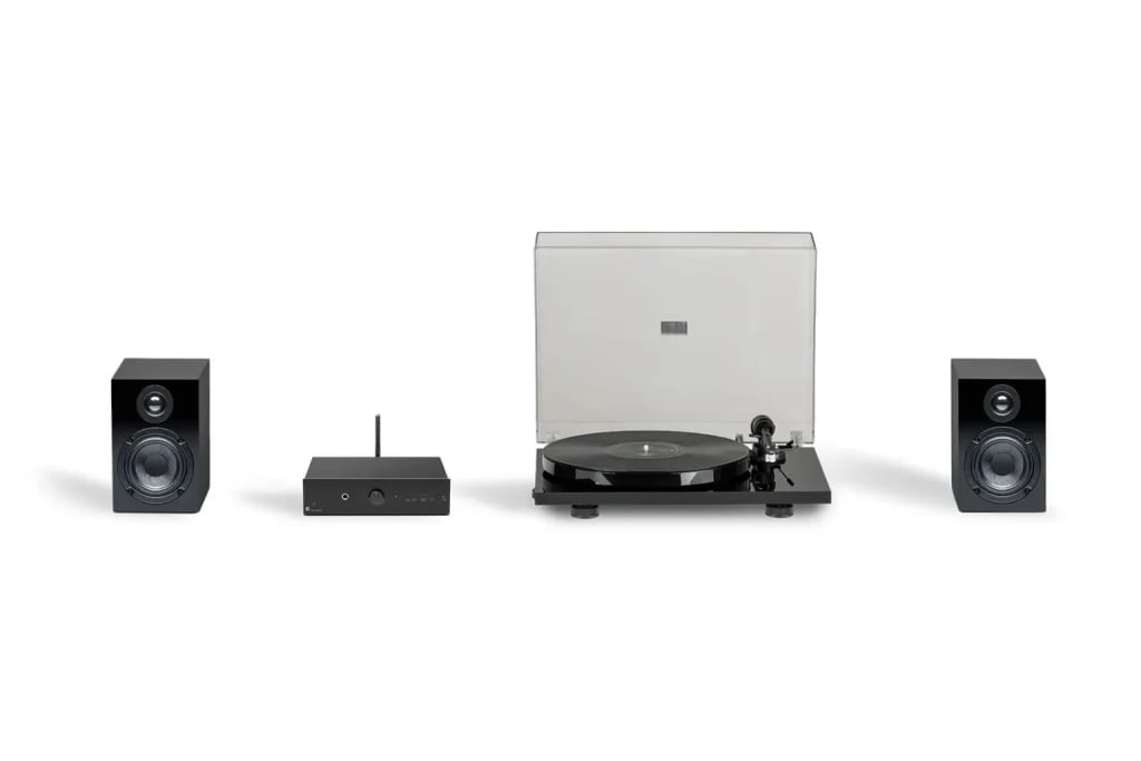 Pro-Ject Stereo Set E Phono Svart förstärkare och svart vinyl valnöt högtalare