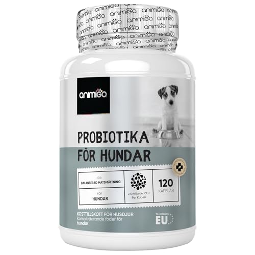 Probiotika för matsmältning hos hundar - 120 tarmkapslar - Stödjer tarmhälsa, gastrointestinal flora - Med laktobacillus, linfrö & prebiotika - Tarmrengöring & matsmältningsenzymer hund - animigo