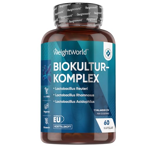Bioculture komplex probiotika & prebiotika - 77 miljarder CFU - 20 levande bakteriekulturer - 60 veganska probiotiska komplexa kapslar med Lactobacillus acidophilus & Reuteri för kvinnor & män.