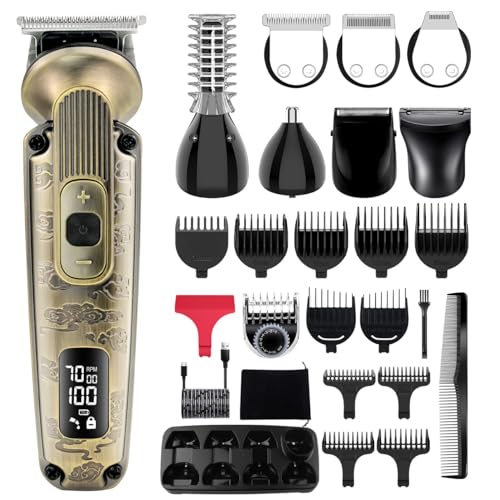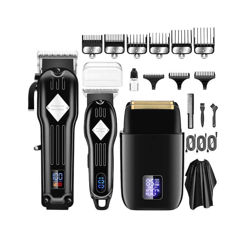 Professionell Hårklippare och Skäggtrimmer med LED-Display för Män - Hårtrimmer för Konturer