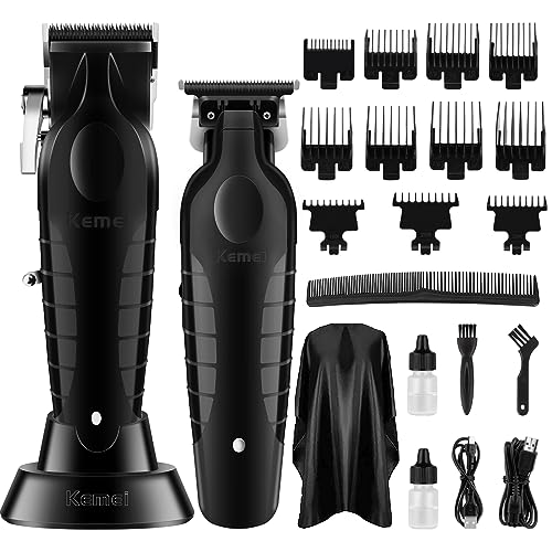KEMEI Svart professionell hårklippare och trimmer set, elektriska hårklippare för män, sladdlösa frisörklippare, T-blad, konturtrimmer, USB-laddningsbar, km-2296, km-2299