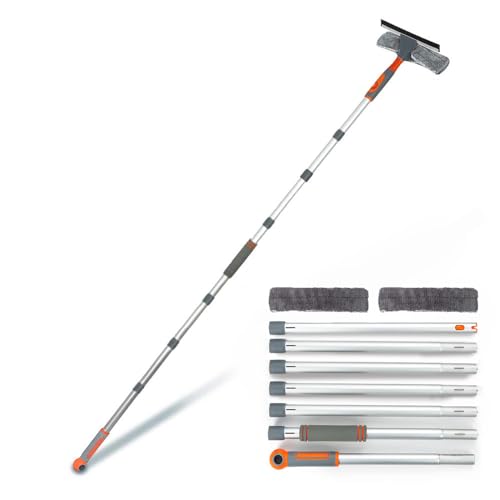 AIDELY Professionell fönsterputsrengörare, 2-i-1 duschskrapa med förlängningsspole, 107 tum teleskopiskt fönster tvättmaskin med böjbart huvud, glas rengöringsverktyg för inomhus/utomhus högt fönster