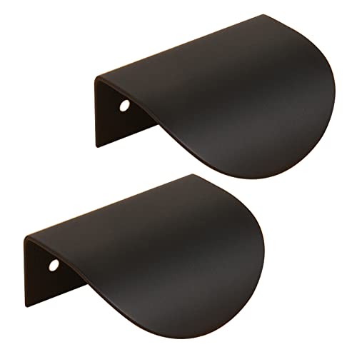 2 stycken profilhandtag blad knappar böjda ren koppar skåphandtag dolda dörrhandtag mässing dörrhandtag lådhandtag för garderob, garderob (längd 60 mm, svart)