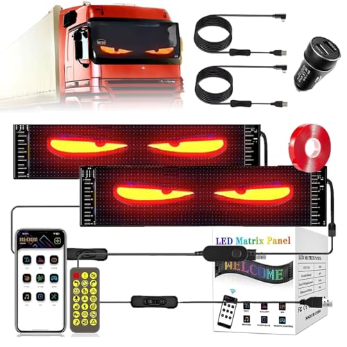 Kocusu djävulsögon ljus för bilar, 2 st 34,8 x 10 cm gör-det-själv dynamiska LED-ögon för lastbilar, programmerbar display med fjärrkontroll och app för lastbilar, bilar, fönster och bar
