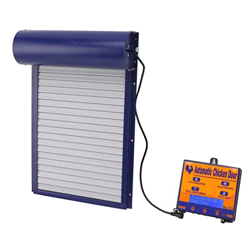 Automatisk Hönsgårdsdörr, Batteridriven Aluminium Automatisk Kycklingdörröppnare med Timer, Programmerbar Ljussensor och Fjärrkontroll, LCD-skärm Flerläges Hönsgårdsdörröppnare (Blå)