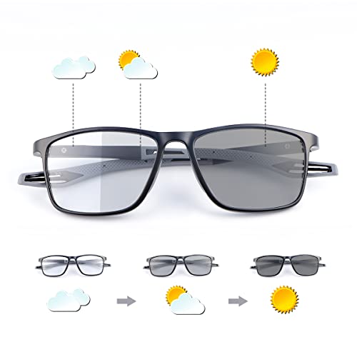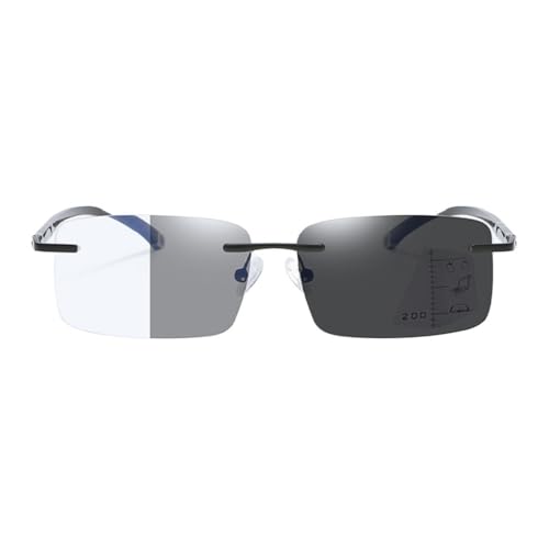 KOOSUFA kantlösa självtonande glidande läsglasögon glidande glasögon progressiva multifokus anti-blått ljus fotokrom män kvinnor titan med UV-skydd solglasögon 1,0 1,5 2,0 2,5 3,0 3,5, 1 x grå, 2.5