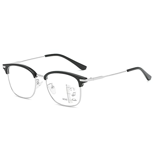 Snygga progressiva multifokala fotokromatiska läsglasögon för män kvinnor, TR90 glasögon med flexibel ram(Black/Grey,2.5 x)