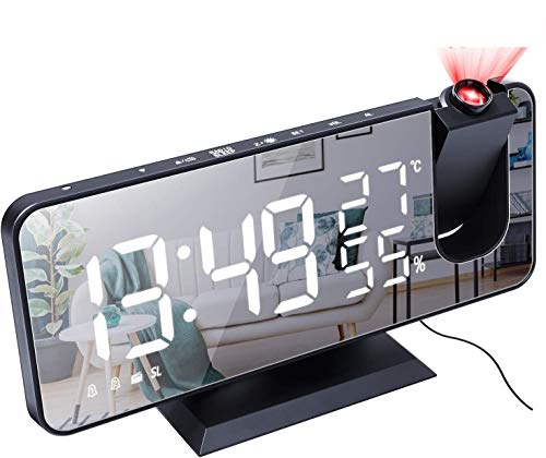 DollaTek Radio projektion LED-väckarklocka stor skärm temperatur och fuktighet display elektronisk klocka för sovrum köksgåva - svart skal digital vit