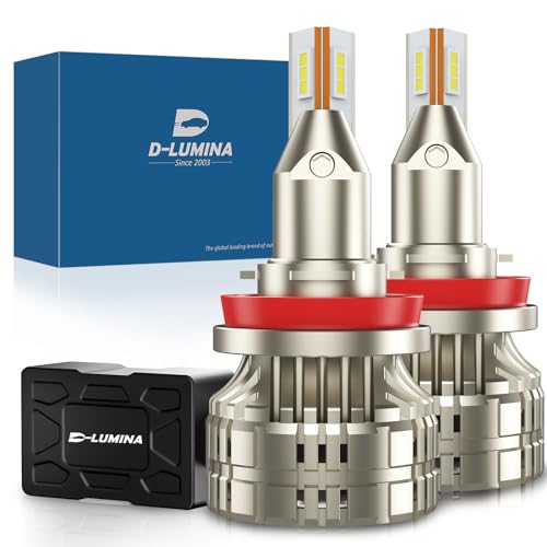 D-Lumina H8 LED Strålkastare Glödlampa Projektor Canbus Felfri 120W 20000LM Auto Billampa Lampor Konvertering Glödlampa 6000K vit,Standard stråle för strålkastare med lins (Pack med 2)