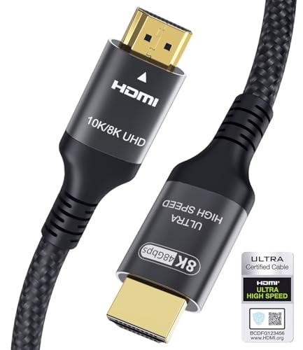 Certifierad 10K 8K HDMI 2.1 Kabel 1M, 48Gbps Ultrahög Hastighet HDMI Kabel Ethernet CEC 4K 240Hz 165Hz 144Hz 120Hz 10K 8K 60Hz ARC eARC Netflix HDCP2.3 HDR10+ PC Bärbar Dator TV Projektor PS5 X-Box