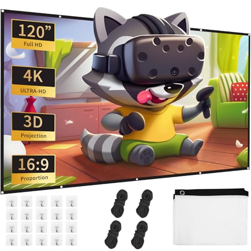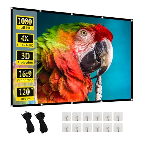 TOWOND Projektorskärm och stativ, 120 tum bärbar projektionsskärm inomhus utomhus projektor skärm 16:9 4K HD skrynkelfri lätt filmskärm med bärväska för bakgården filmkväll