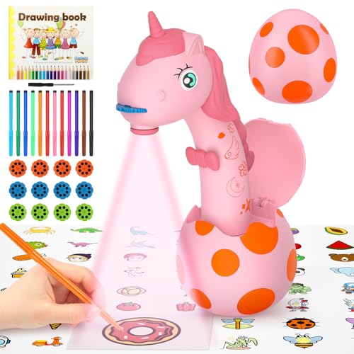 KETIEE Projektorteckningar för pojkar flickor med 96 motiv, enhörning barn projektor för konstritning ritleksaker målning present flickor pojkar 3 4 5 6 7 8 9 år, rosa