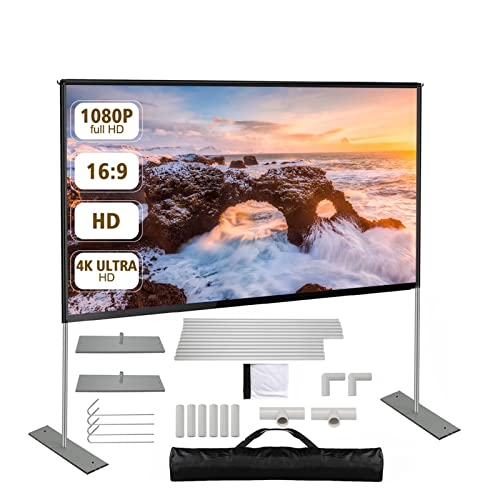 VISULAPEX Projektorskärm med stativ, bärbar projektorduk 100 tum, 16:9, 4K HD vikbar skärm för projektor med bärväska för inomhus och utomhus, hemmabio, trädgårdsbio