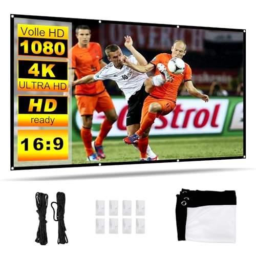 ASHATA Rullduk projektorduk, projektionsduk 152 cm (60–120 tum), bärbar, vikbar projektorduk, bärbar 16:9 canvas, hemmabio, projektionsyta för utomhus-campingfilm/öppen luftbio (72 tum)