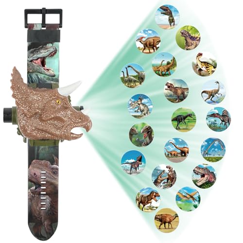 Vicloon Barnklocka - Digital Projektorklocka för Barn, Triceratops, Clamshelldesign Med 24 Projektionsmönster, Armbandsur Med Projektor