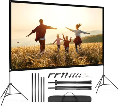 TOWOND Projektorskärm och stativ, 120 tum bärbar projektionsskärm inomhus utomhus projektor skärm 16:9 4K HD skrynkelfri lätt filmskärm med bärväska för bakgården filmkväll