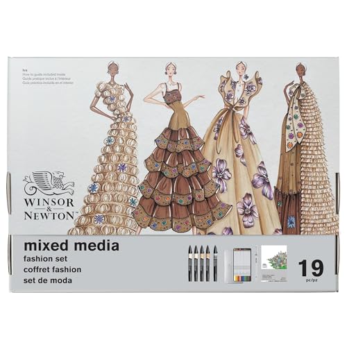 Winsor & Newton 0290199 Mixed Media Fashion Set – 4 Promarker Brush, Fineliner, 12 Färgpennor & Skissblock för Modeillustration, Skisser & Kreativt Tecknande