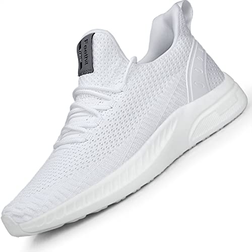 Feethit Herr Slip On promenadskor blad halkfria löparskor lätta andningsbara nät mode sneakers vit storlek: 9 UK, Vitt, 42.5 EU