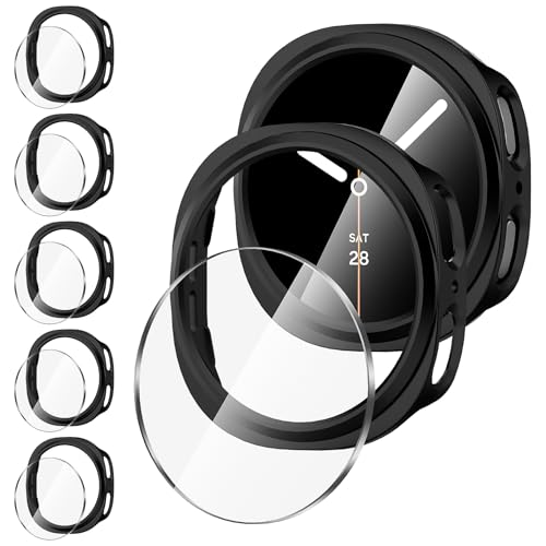Diruite 5+5 Screen Protector for Samsung Galaxy Watch 8 44mmScreen Protector,Scratch-Proof Hardness PC Protective Case*5+HD Protective Film*5,Black,44mm