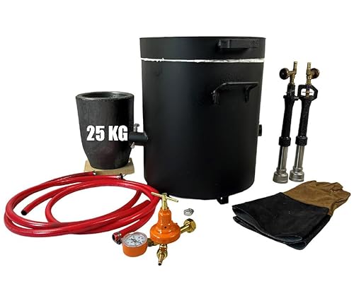 25 kg stor propangas-smältugn-set, dubbla brännare och regulator, metall smältugn med 25 kg grafitdegel, gjuteriförbränningsugn för smältande koppar, mässing, guld och aluminium