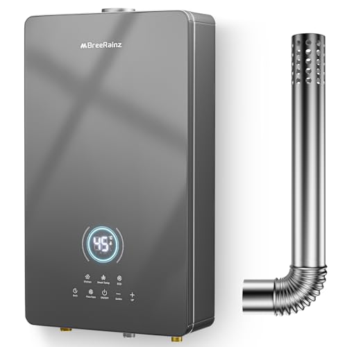 BreeRainz 16LPM gasvarmvattenberedare, 32 KW propangas varmvattenberedare med 5 driftlägen, LED-pekskärmsknappar, 220 V frostskyddskontakt, drift med propan butan