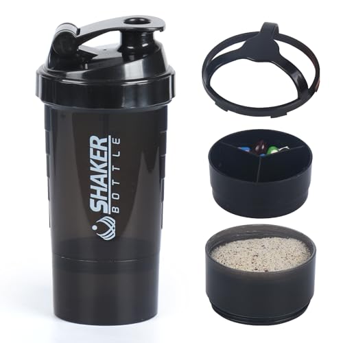 XTKS Protein Shaker, Shaker Protein Shake med förvaring och mixboll, 45 ml, proteinskakare, läcksäker, bärbara shakerflaskor för proteinblandningar och förarbets-ut, diskmaskin säker (svart)