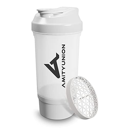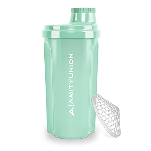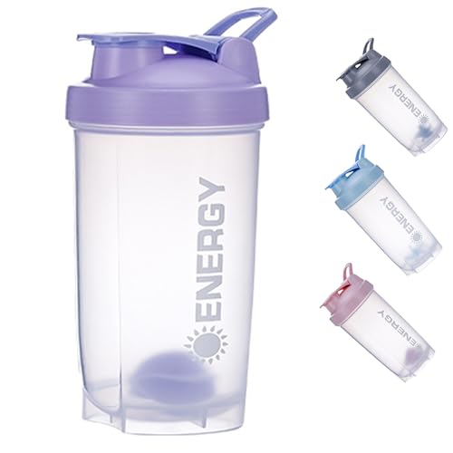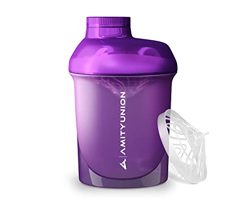AMITYUNION Protein Shaker Lila Deluxe 400 ml – Proteinskakare läckagesäker – BPA-fri med sil och skala för krämiga vassle proteinpulvershakes – gym fitnesskugg för isolerade sportkoncentrat