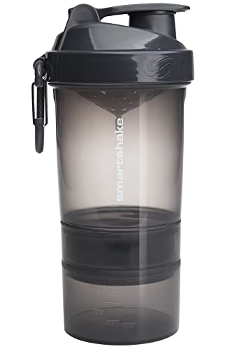 Smartshake Original2Go Shaker Protein Liten Grå Flaska med Förvaring 400ml till 600ml- BPA Fri Vattenflaska till Gym Läckagesäker Proteinshaker till Träning, Space Grey
