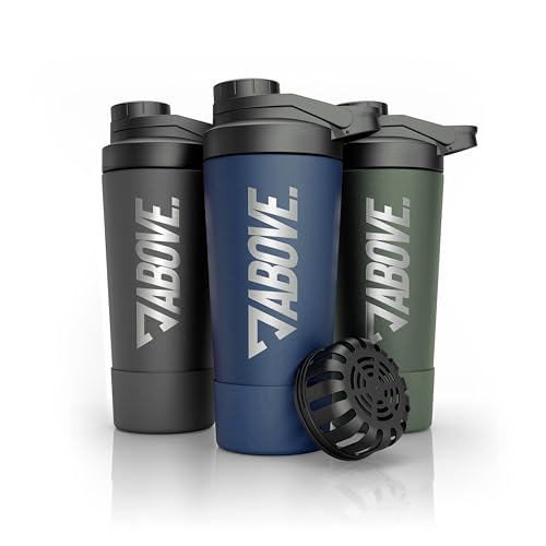 ABOVE. Protein Shaker Rostfritt Stål 750ml – BPA-fri & Isolerad: Håller Drycker Varma/Kalla i 12H – Graverad Skala & 100% Läckagesäkert Lock – Robust & Hållbar – Tål Maskindisk upp till 45°C (Svart)