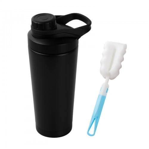 Ideus Shaker Protein Termosflaska, 710 ml (24 oz), dubbelväggig sportflaska i rostfritt stål med blandkula, BPA-fri läckagesäker skruvlock (svart)