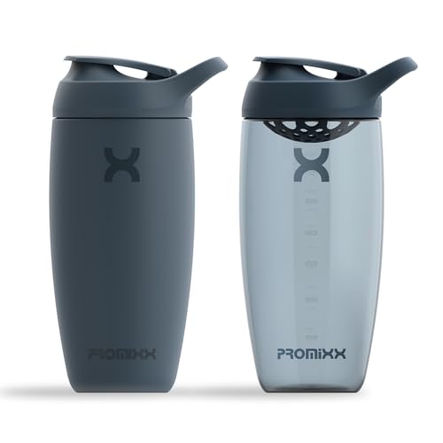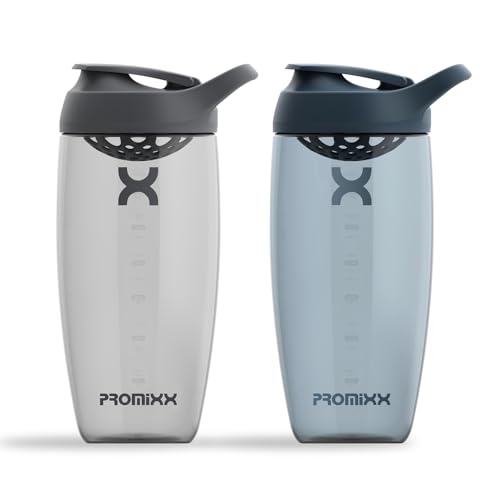 Promixx PURSUIT Protein Shaker-flaska 2-pack – premium sportshaker-flaskor för proteinblandningar och tillskottsskakningar – midnattsblå, grafitgrå, 700 ml