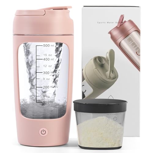 Elektrisk proteinshaker, 650 ml, USB C uppladdningsbar elektrisk proteinshake-mixer, påfyllningsbara shaker-koppar, protein shaker flaska med förvaringsutrymme, för Proteinshakes (rosa)