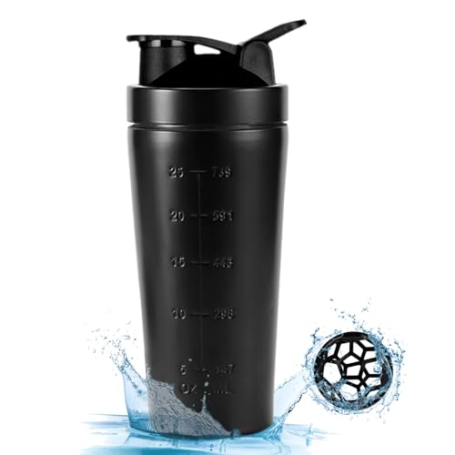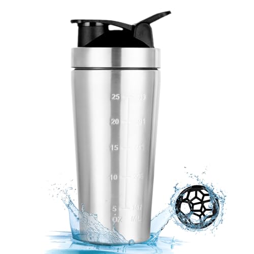 Aicharynic Protein Shaker i rostfritt stål, 750 ml, med spiralboll, BPA-fri, för fitness och diet