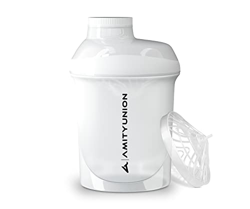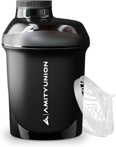 AMITYUNION Protein Shaker 400 ml med sil proteinskakare – liten proteinskakare läckagesäker – BPA-fri, med skala för krämiga vassproteinpulvershakes, protein BCAA koncentrat i svart