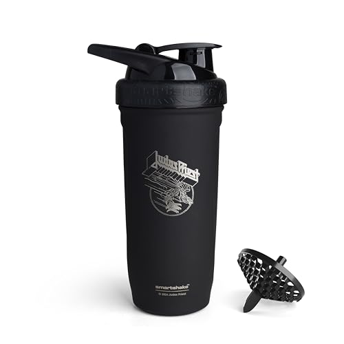 smartshake Rockband Förstärkning rostfritt stål Protein Shaker flaska 900 ml | 8,5 dl – läckagesäkert skruvlock – BPA-fri – icke-isolerad – unisex (Judas Priest logotyp)