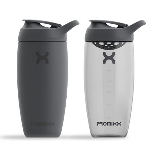 Promixx PURSUIT Protein shaker-flaska 2-pack – premium sportshaker-flaskor för proteinblandningar och tillskottsskakningar – rostfritt stål 550 ml, ekozen 700 ml, grafitgrå