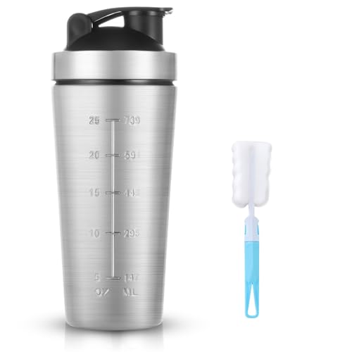 AOOWU Proteinshaker i rostfritt stål, 900 ml proteinshaker med bollblandare, proteindryck shaker för utomhussportentusiaster