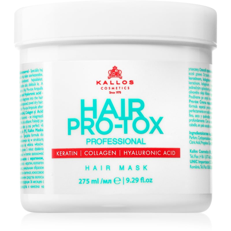 Kallos Hair Pro-Tox Mask för fint och skadat hår Med kokosnötolja, hyaluronsyra och kollagen 275 ml