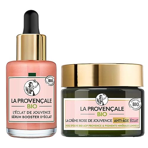 La Provençale Ekologisk - rosa rutin för skinande hud - L'Éclat de Juvence-serum + Pink Cream of Juvence - certifierad ekologisk ansiktsvård - förenar, reagerar och reaktiverar glansen - alla hudtyper