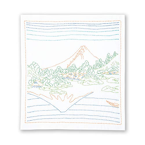 Olympus Thread Sashiko broderipack Hana Fukin Hokusai Katsushika serie Berget Fuji speglas tryckt i Kawaguchi-sjön i provinsen Kau tyg